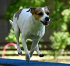 Jumping ist eine weitere Wettkampfart im Agility, in der alle Geräte außer der Schrängwand, dem Laufsteg und der Wippe - also ohne die Kontaktzonengeräte - eingesetzt werden dürfen. Ein Jumping-Parcours kann wahnsinnig schnell absolviert werden, dafür aber auch leicht Fehler verursachen."